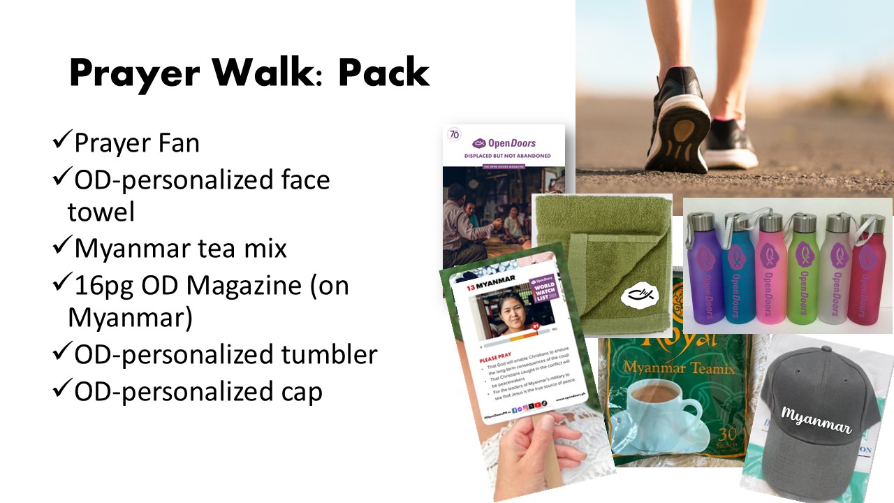 Prayer Fan, OD-personalized Face Towel, local tea from Myanmar, OD Magazine (on Myanmar), OD-personalized cap OR tumbler